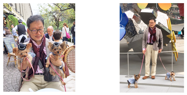 休日にはヨークシャーテリアのくるみちゃんとつむぎちゃんと車で一緒に出かけたりします。 一緒に行けるテラス付きのカフェでランチをするのも休日の楽しみです。可愛いと言われると自然に顔がほころんでしまいます。自分が褒められたわけではないのに可笑しいですね。